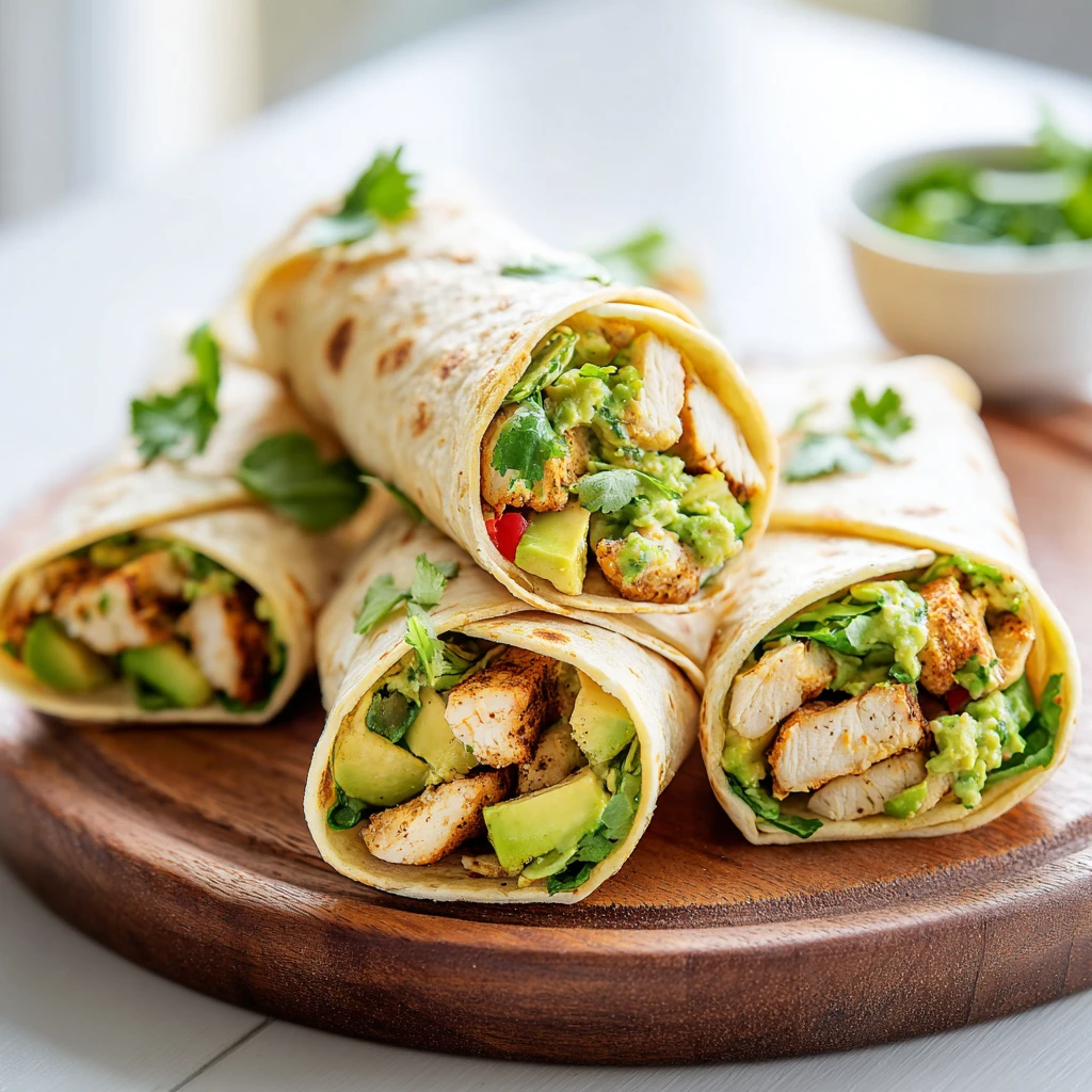 Delightful and quick-to-make burritos filled with tender chicken, creamy avocado, zesty ranch dressing, and crunchy vegetables, wrapped in warm tortillas. A perfect solution for busy weeknights!