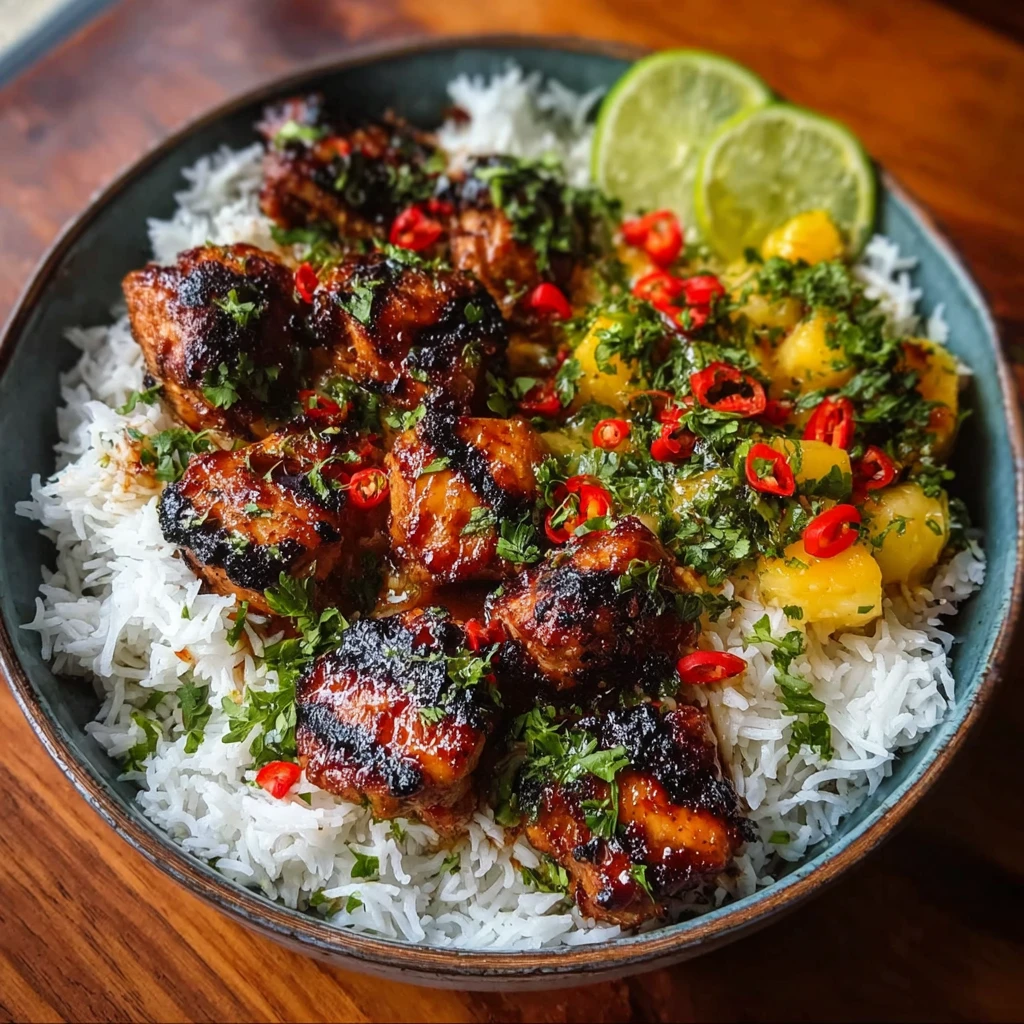 Grilled Maple Sriracha Chicken Bites Coconut Rice