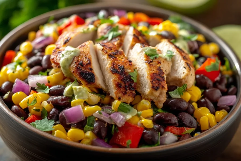 With its combination of lean chicken, fiber-rich beans, and fresh vegetables, this salad provides a satisfying and flavorful dining experience that is sure to please your palate. Incorporate this dish into your meal rotation for a wholesome and delicious option that will keep you coming back for more.