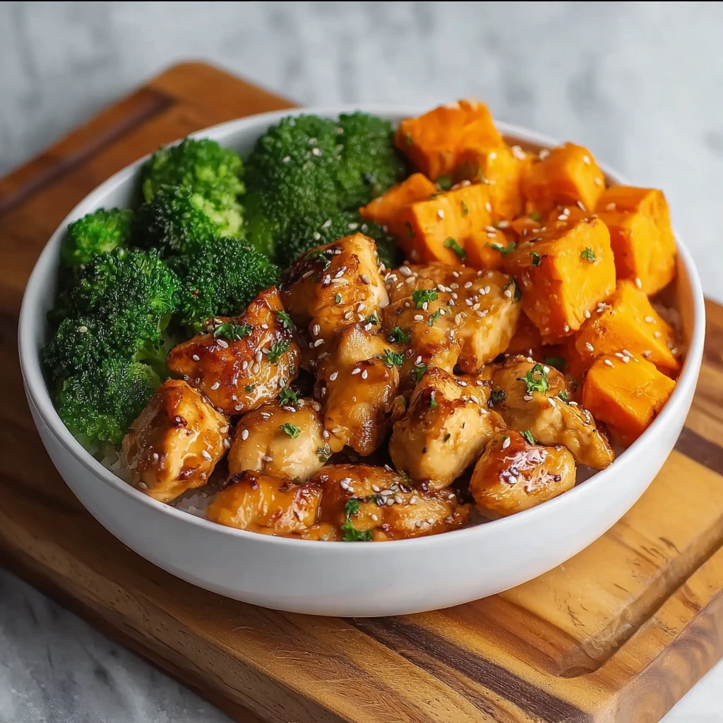 A delightful dish that strikes the perfect balance between tender chicken, sticky honey garlic sauce, and the earthy sweetness of roasted sweet potatoes. Enjoy the harmonious blend of flavors and textures in each delightful bite!